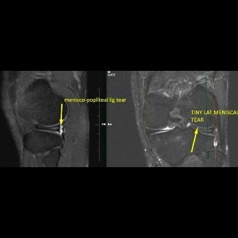 Longitudinal tear involving the lateral menisco popliteal ligament at superior and inferior fascicle.