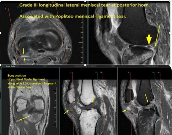 Popliteo meniscal ligament tear.