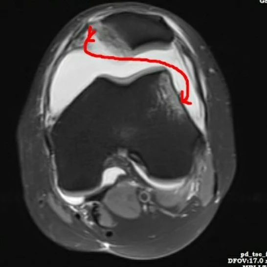 Small focal marrow contusions involving the medial patellar facet, anterolateral femoral condyle –related to Transient Patellar Subluxation.