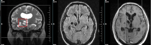 Focal asymmetric temporal atrophy (left>right) with exvacuuo dilatation of left temporal horn – likely suggestive...