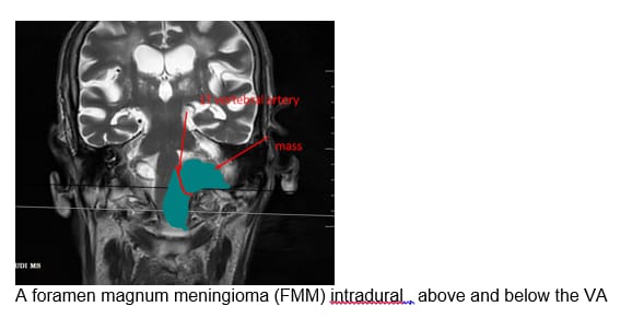 A large extra-axial isointense homogeneously enhancing intradural mass lesion (5.0x3.8x1.9 cm) broad based along the...