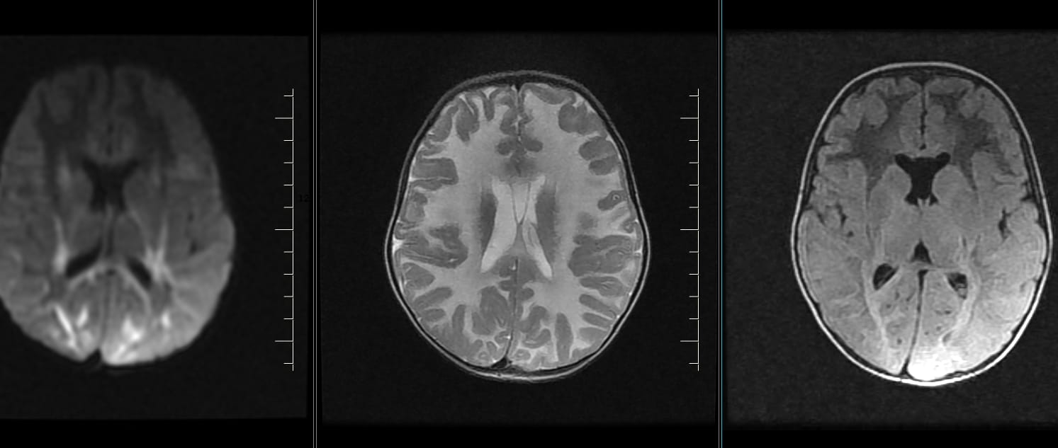 Multifocal patchy and areas of restricted diffusions involving bilateral frontal , parietooccipital subcortical white matter,...